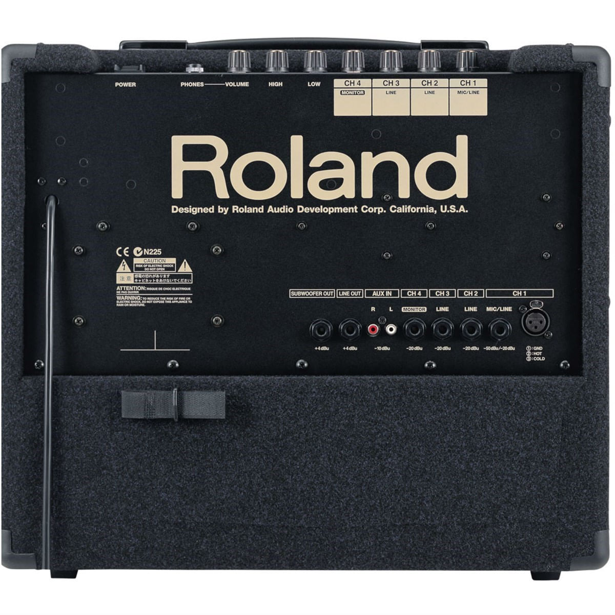 - Equalizador de 2-bandas e saída para Subwoofer Roland KCW-1 (opcional);